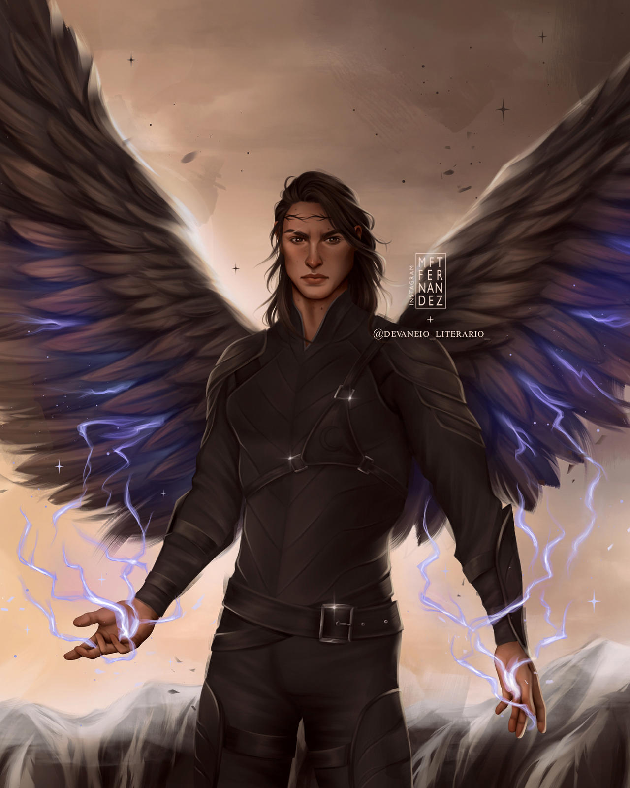 Fan Art! We love Fan artists. They can take an author's words and turn it into something super tangible. I'm always impressed at the level of detail that goes into some fan art. I mean seriously. They'll be able to remember three-word details of a character and depict them perfectly. Such is the case with this piece of art of Hunt, ready for battle. Everything, down to every little mark and tattoo, is here. Plus look at those wings. I can't wait for the day that we see more angels around our site.